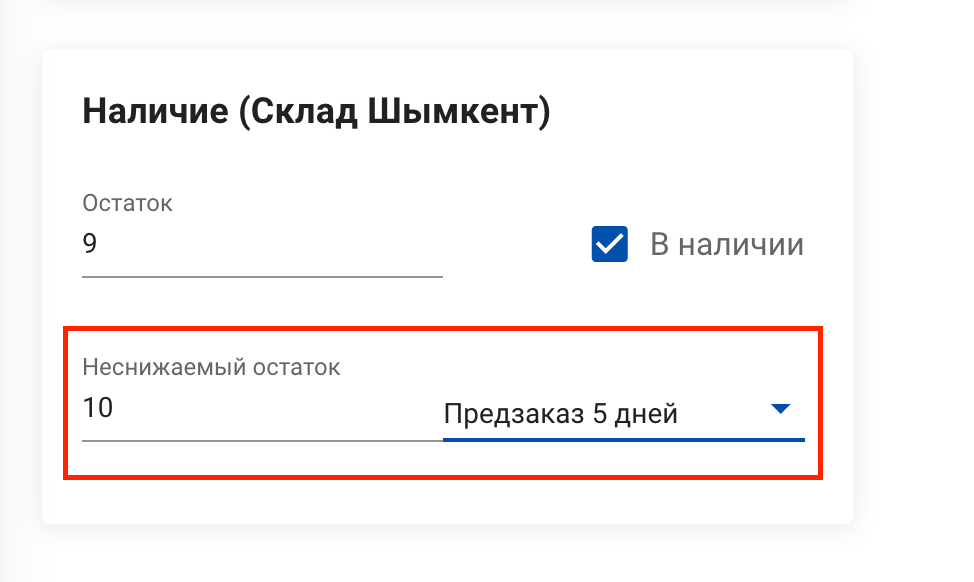 Внимание! Если активна автоматизация снятия товара с продажи при достаижении определенного остатка, то применение отдельных настроек неснижаемого остатка внутри товара работать не будет, т.к. автоматизация имеет наивысший приоритет.