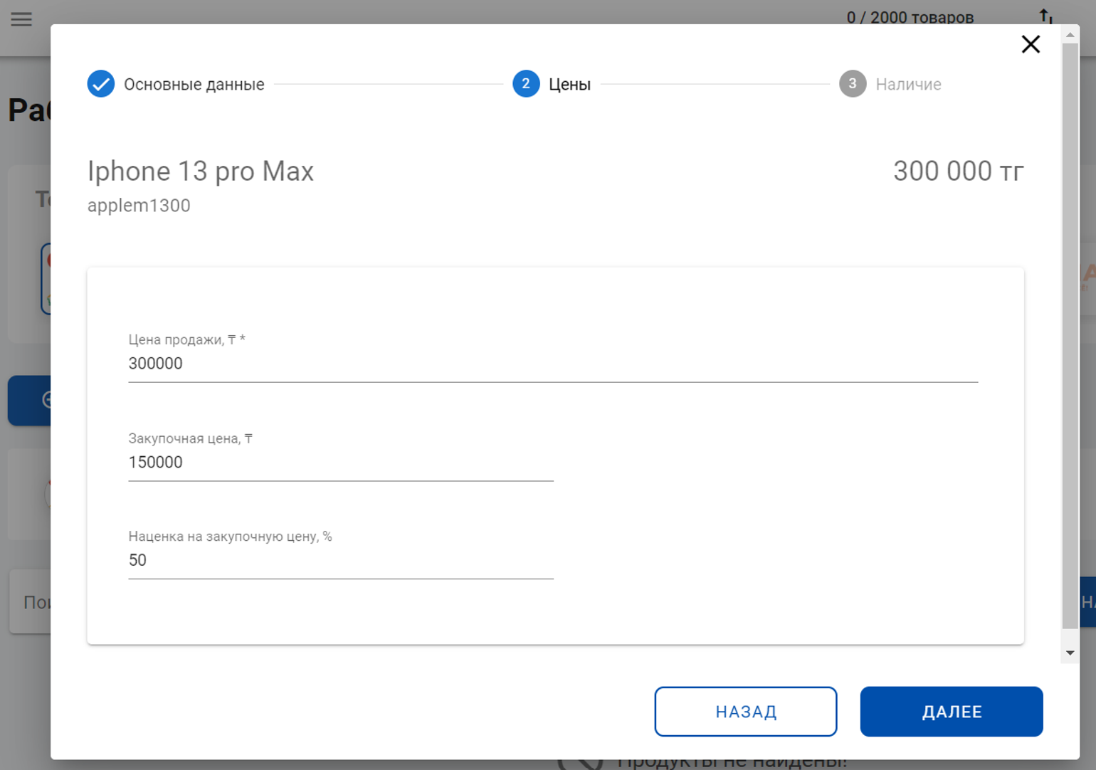 После того, как вы установили цены, нажимаем кнопку Далее и переходим к 3-му этапу