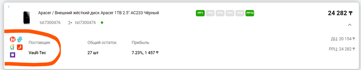 Как определить у себя в магазине на маркетрадаре, что товар был добавлен от поставщика: На главной странице со списком товаров выберите нужный товар. Далее справа под ценой нажмите на стрелочку вниз